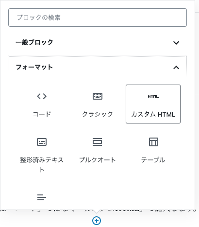 サンプルは「コード」ではなく「カスタムHTML」で記入します。